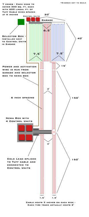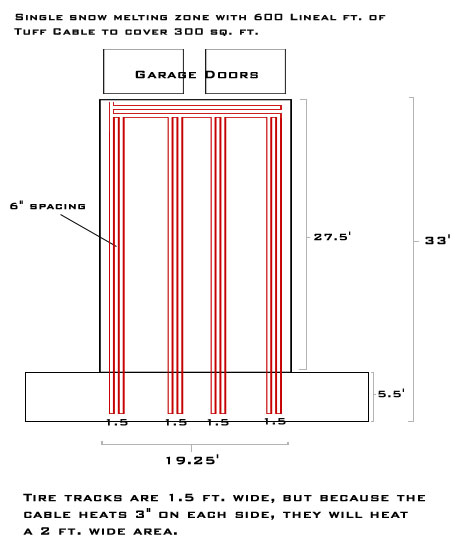 Tuff Cable Snow Melting Diagrams Tuff Cable 1 Zone Layout - Dual Tire Tracks Tuff Cable 2 Zone Layout - 18' x 33' Tuff Cable 3 Zone Layout - Tire Tracks Tuff Cable 7 Zone Layout - Tracks & Landing